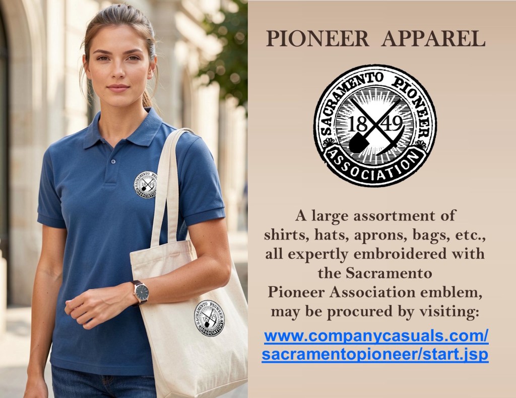 The Sacramento Pioneer Association, a non-profit organization, formed in 1854 by the actions of early Sacramentans who realized the historic significance of the times in which they lived. From its inception, the Association resolved to collectively celebrate and preserve the memory of the California Gold Rush era experiences of its membership. The organization promoted camaraderie, civility and patriotism among its members and their families. Through the years, the Sacramento Pioneer Association has been instrumental in preserving artifacts, documents and historic buildings, including Sutter’s Fort. Current members continue this mission of historic preservation through research and publication, philanthropy and a deep appreciation for Sacramento’s history.